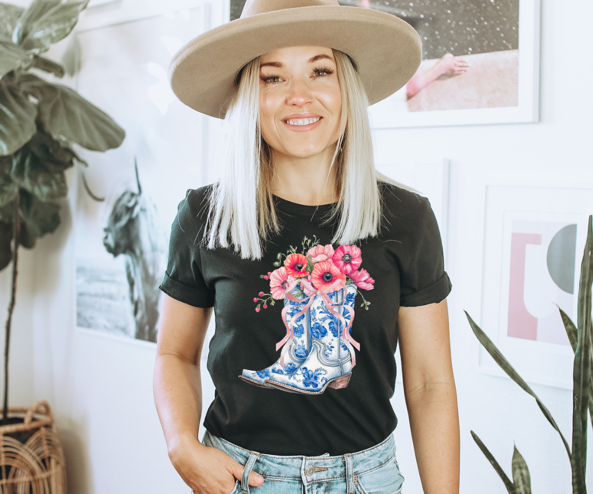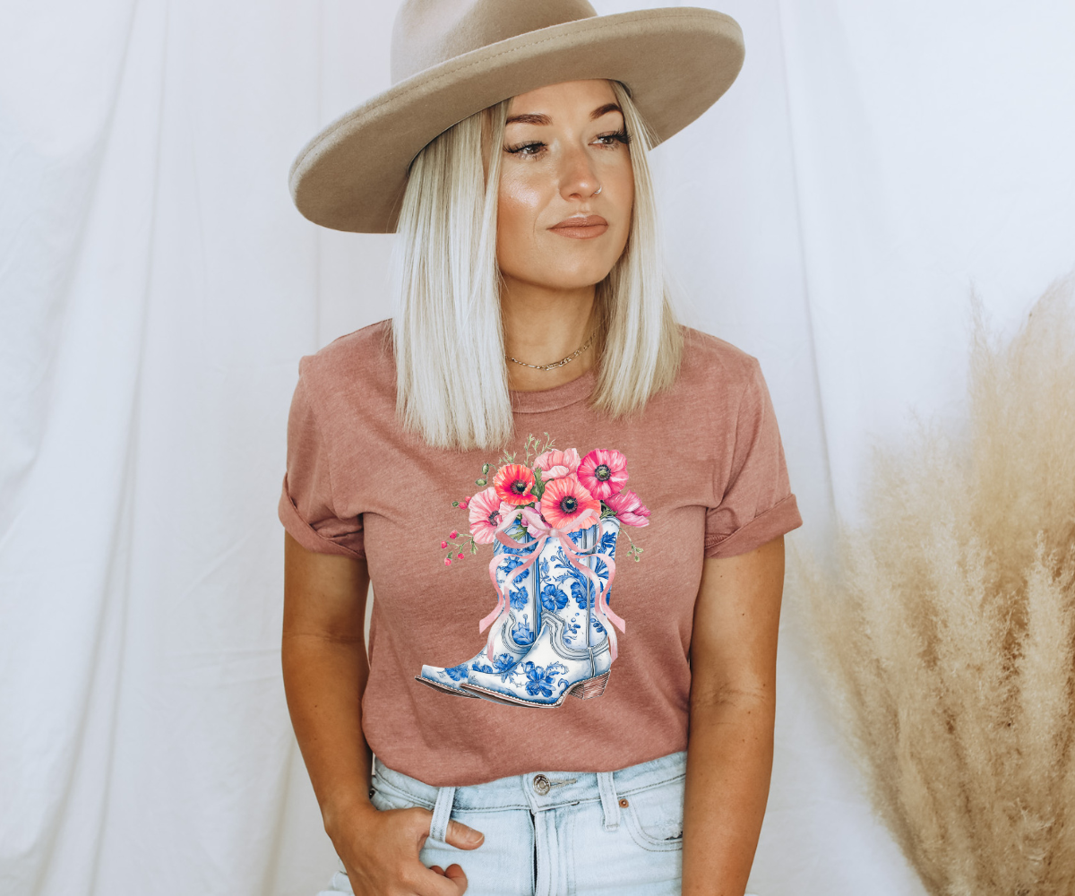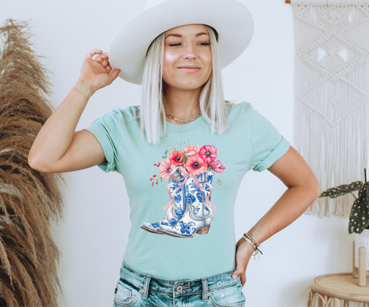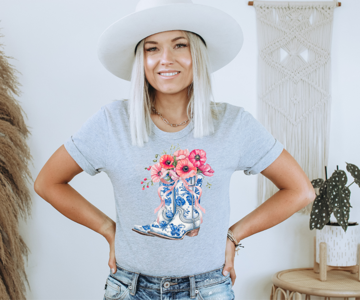 Boot Bloomin' Beautiful - Athletic Heather / XS is backordered and will ship as soon as it is back in stock.